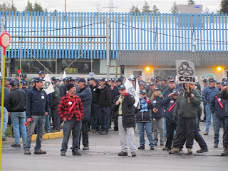 Les 330 syndiqué-es de l’usine sont sans contrat de travail depuis le 30 septembre 2011. Le conflit porte sur la sous-traitance, le régime de retraite et les clauses à incidence pécuniaire, dont les salaires.